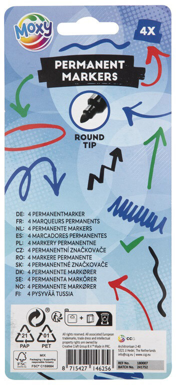 Alkoholos filctoll készlet, 4 db/csomag, kerek hegy