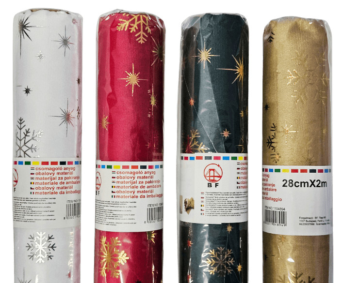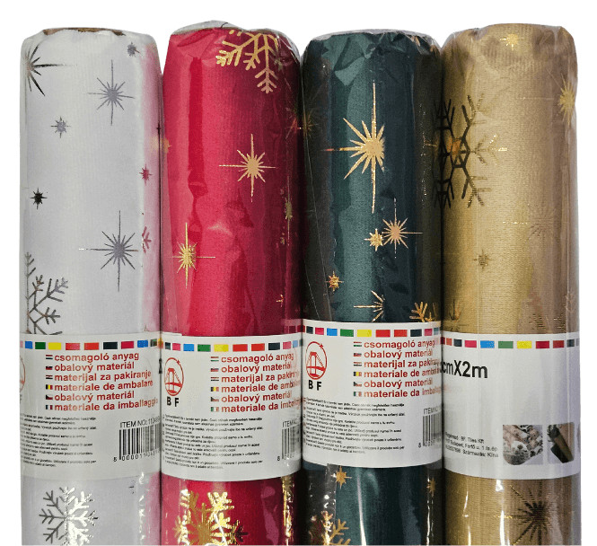Asztali futó, asztalközép 28 cm x 2m, karácsonyi, hópehely mintás, többféle változat. Az ár egy ívre vonatkozik. Ajándékcsomagolásra is alkalmas. Organza jellegű.