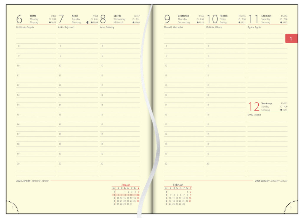 A pasztell színek világába kalauzolják el Önt a MyPastel A5 heti agendák. A krém színű lapok jól illeszkednek a pasztell színű, selymes tapintású borítóhoz, melyen a díszkeret és a divatos évszám fokozza tovább a hatást. A termék krém színű (chamois) lapokkal készül.