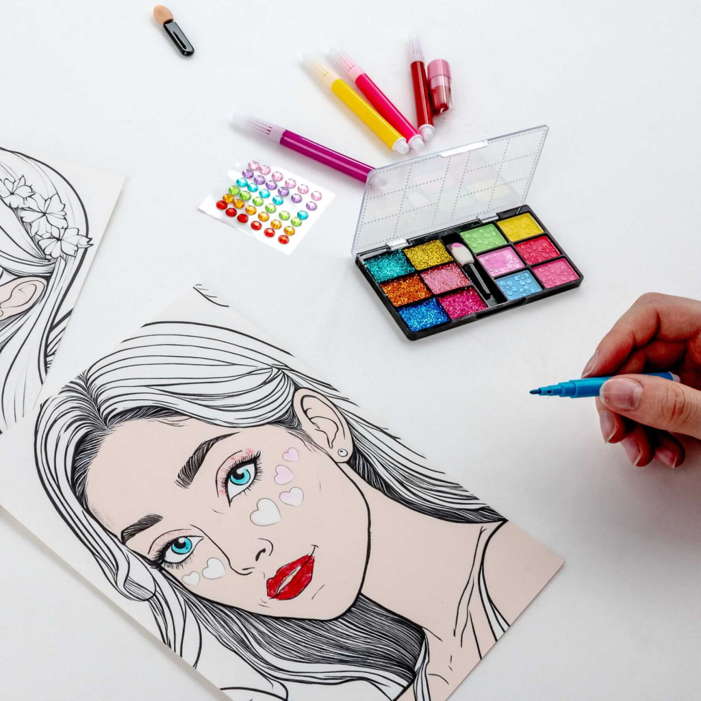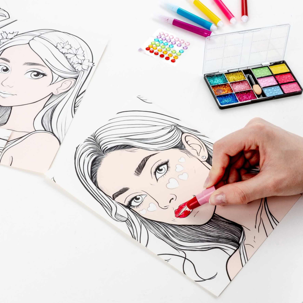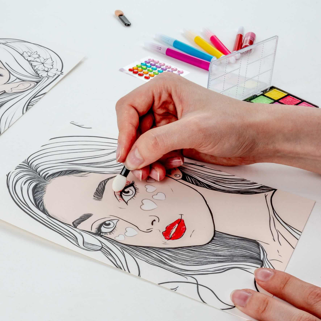 Ez a készlet kis művészeknek való, akik kipróbálnák a sminkelést. A készlet 5 előrajzolt lapot tartalmaz, amelyen különböző arcok találhatók.