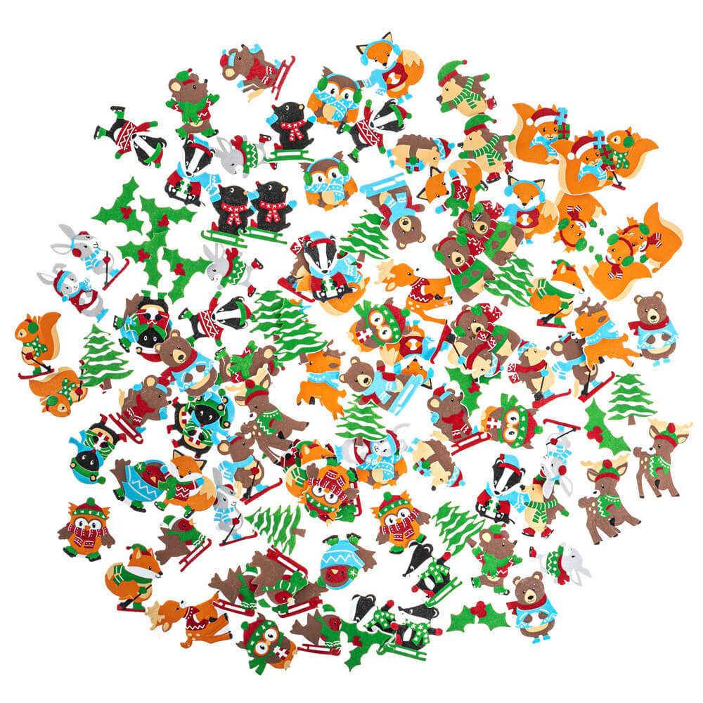 Dekorgumi, öntapadós, karácsonyi állatok, 120 db-os