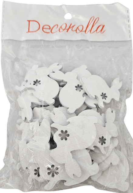 Fa nyuszi formák virágmintával, fehér, 30 db/csomag. 3 féle méret: 3,5, 4 és 5 cm-es