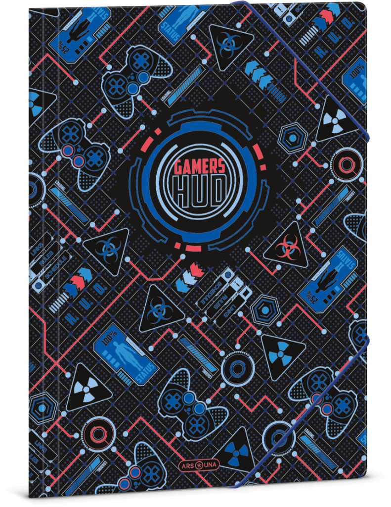 Gamers Hud gumis mappa A/4, Ars Una. A/4 méretű gumis dosszié iratok, füzetek tárolására. 350 gr-os vastag kartonból készült dosszié lekerekített első sarkokkal, színes gumi zárópánttal. Méret: 330mm x 240mm x 5mm