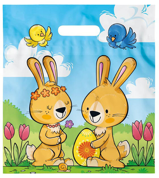 Húsvéti tasak húsvéti nyuszi mintájú matricával - Ideális csokoládé-csomagok készítéséhez gyermekek számára!