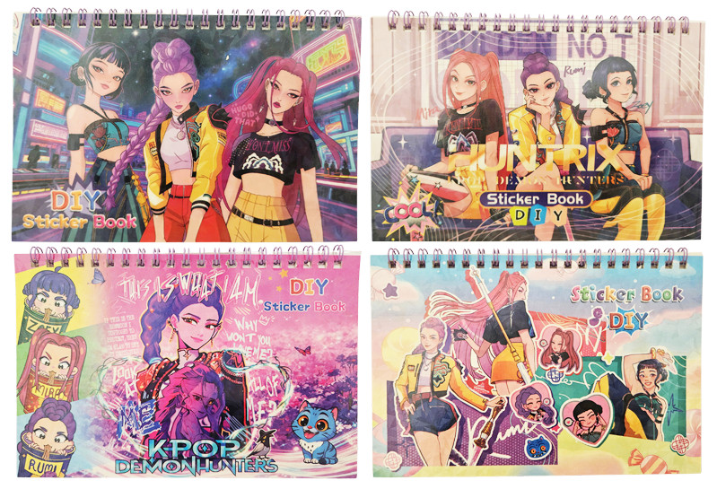 K-POP Démonvadászok matricás füzet, 10 ív matrica, 12x19,5cm, 4 féle. Egy spirálfüzetben 10 ív matrica van. Az ár 1 db-ra (egyféle borító) vonatkozik, nem biztos, hogy mindegyik van raktáron.