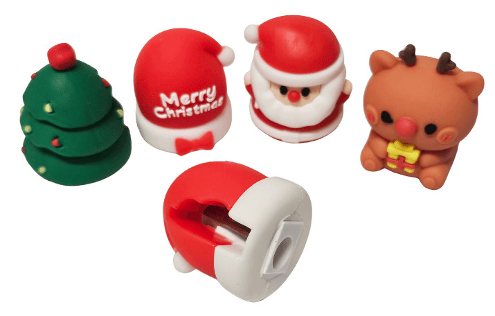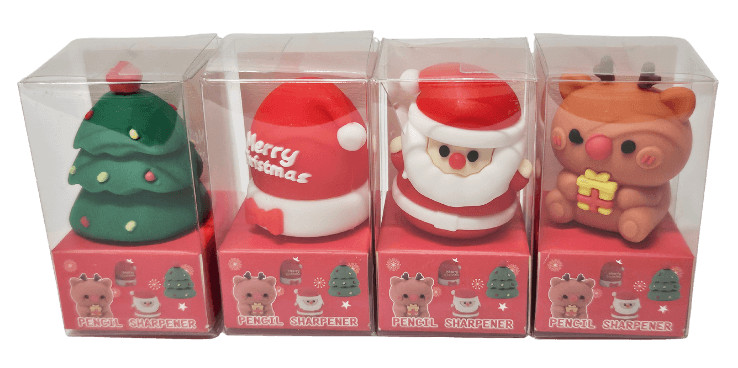 Karácsonyi hegyező, 1 lyukú, 3x3,5 cm, 4 féle (karácsonyfa, mikulás sapka, télapó, rénszarvas)