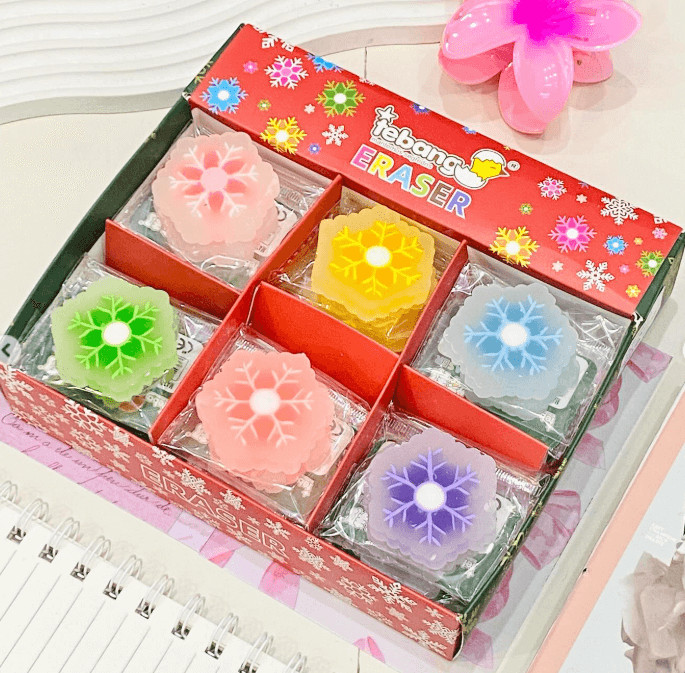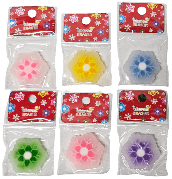 Karácsonyi radírok, hópehely, többféle változat. Méret kb. 4x4cm. Az ár 1 darabra vonatkozik, nem biztos, hogy mindegyik minta van raktáron.