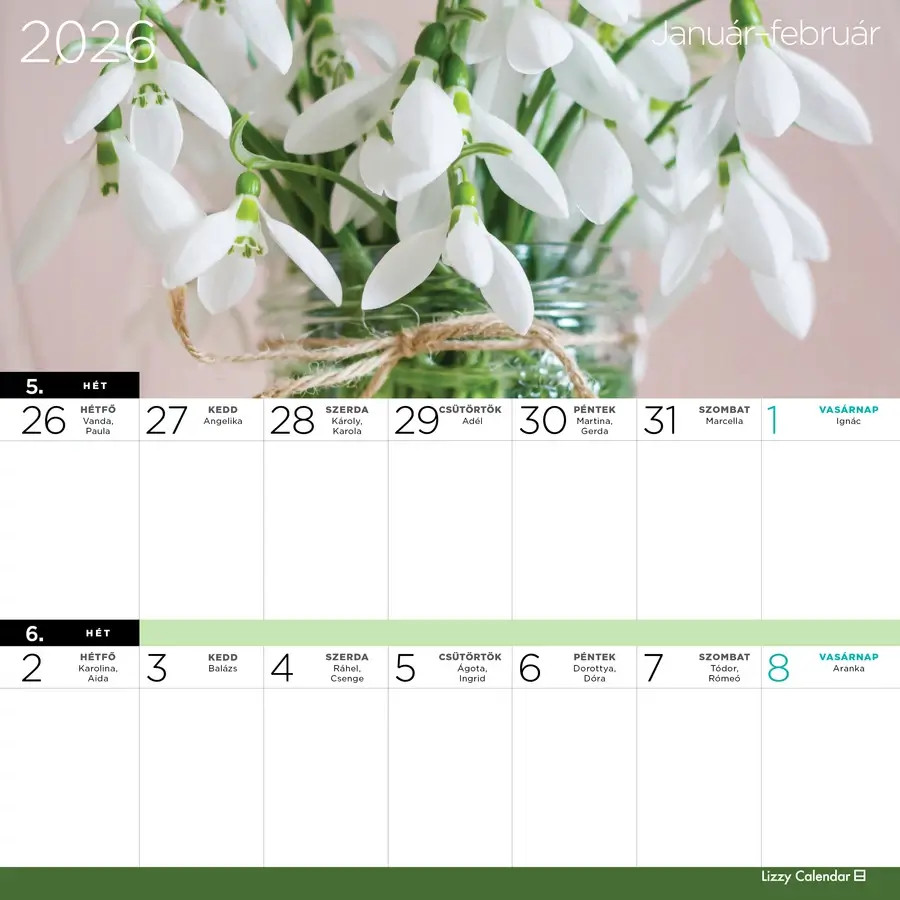 Lizzy Card mágneses, kétheti tervezőnaptár, 22x22cm, 2026, Virágok