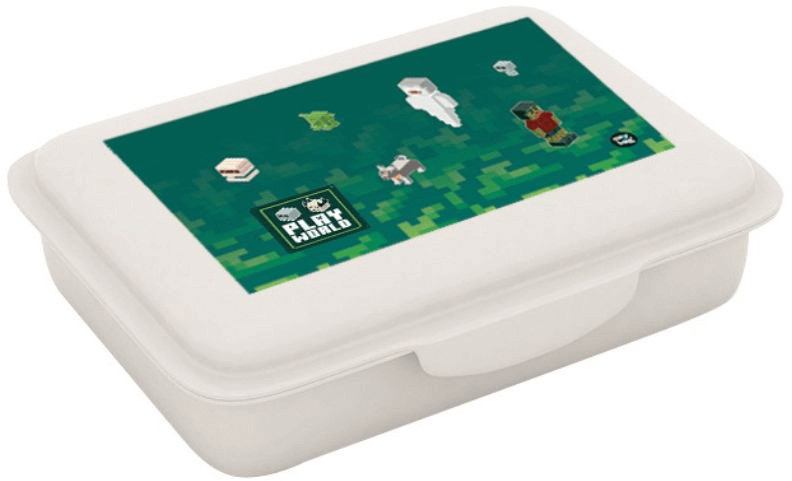 Minecraft mintás uzsonnás doboz kivehető rekesszel, OXY, Playworld. Műanyag uzsonnásdoboz kivehető rekesszel az ételek elkülönítéséhez. Ideális iskolai uzsonnához, a kisiskolások imádni fogják! A doboz könnyen tisztítható mosogatógépben, mikrohullámú sütőben való melegítéshez pedig csak nyitva kell hagyni a fedelet. Méret: 180*130*70 mm, Súly: 120 g