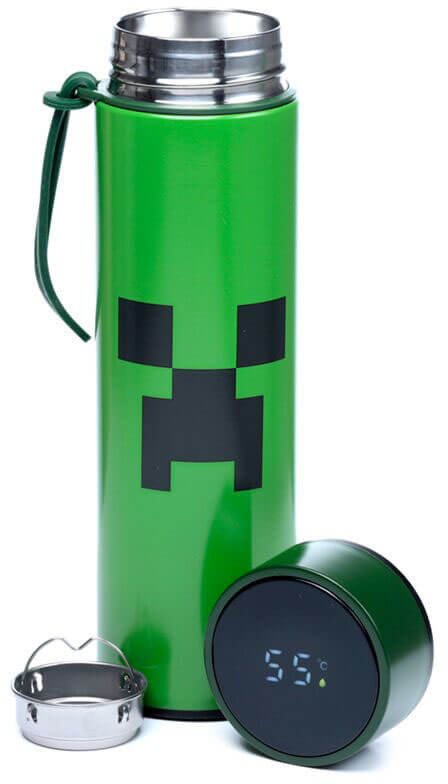 Minecraft mintás rozsdamentes acél thermo palack, digitális hőmérővel, 450 ml, Minecraft Creeper