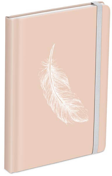 Notesz, A/5, 13x18cm, sima, 120 lapos, gumis pánttal, MFP, barack színű, levél. Méretek: 130mm x 180mm x 20mm (szél x mag x mély)