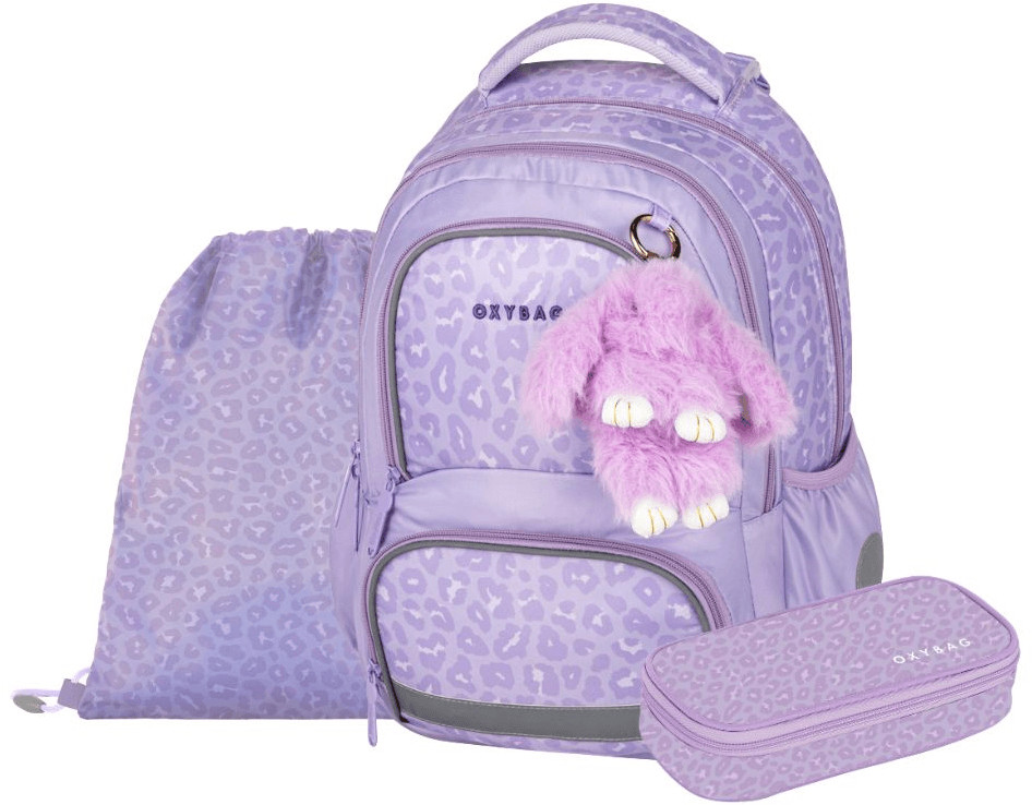 OXY Next iskolatáska szett, hátizsák tolltartóval és tornazsákkal, Bunny, lila