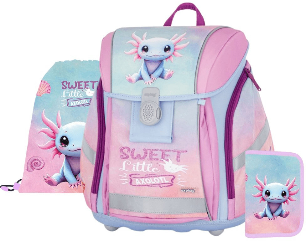 OXY Premium Light mágneszáras iskolatáska szett tolltartóval és tornazsákkal, Axolotl