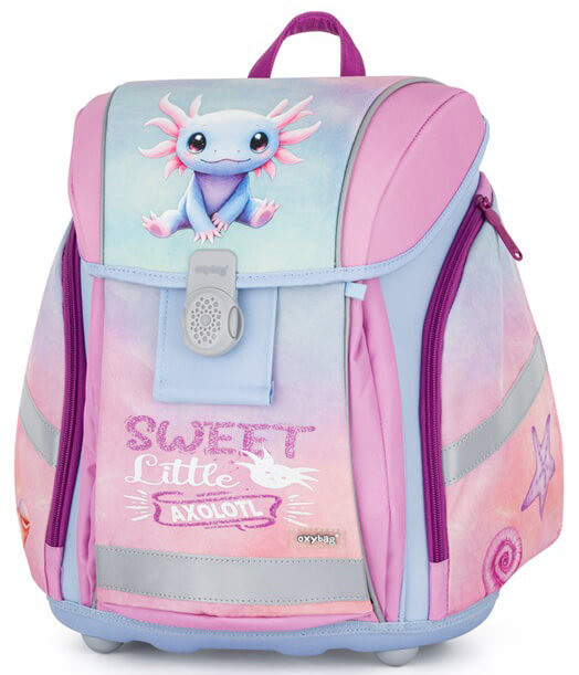 OXY Premium Light mágneszáras iskolatáska szett tolltartóval és tornazsákkal, Axolotl.