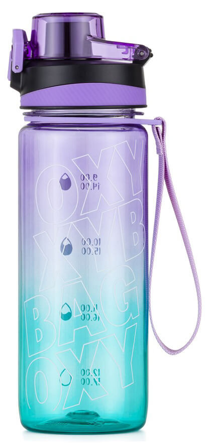 Oxybag kulacs, 800 ml, BPA mentes, OXY Life motivációs kulacs, Ombre Azur, türkiz-lila