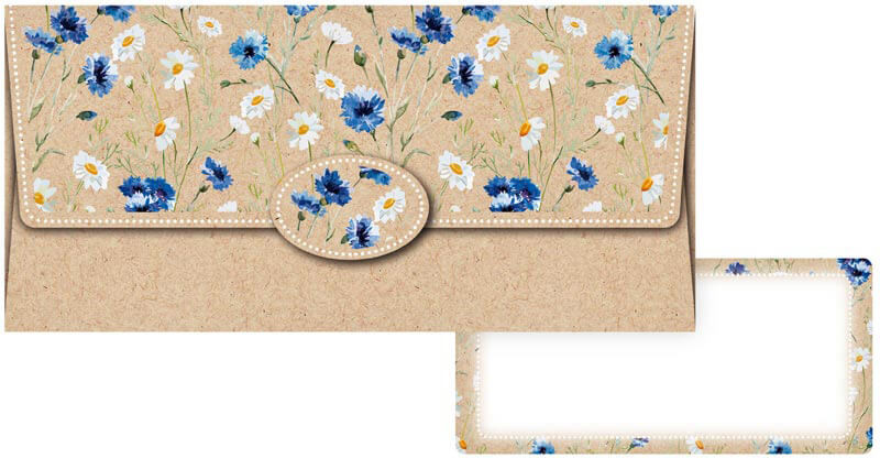 Pénzes boríték, MFP, 55-088, barna, virágos. Méretek: 180mm x 85mm x 2mm (szél x mag x mély)