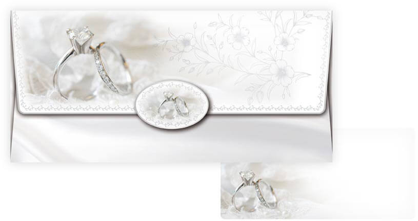 Pénzes boríték, MFP, 55-112, fehér, esküvői gyűrűkkel. Méretek: 180mm x 85mm x 2mm (szél x mag x mély)
