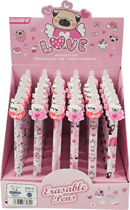 Radírozható zseléstoll, nyomógombos, 0,5mm, HZ-1795, cicás-kutyás szivecskével, többféle változat. Az ár egy darabra vonatkozik, nem biztos, hogy mindegyik van készleten.