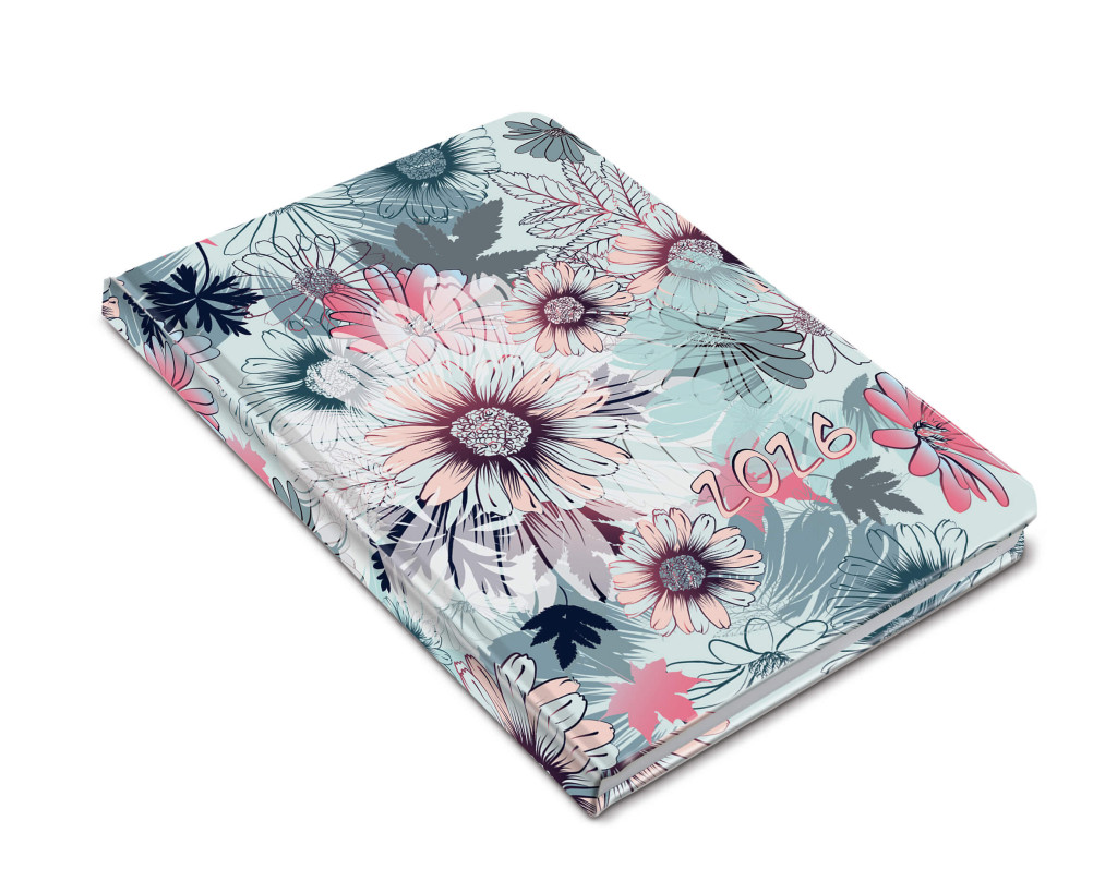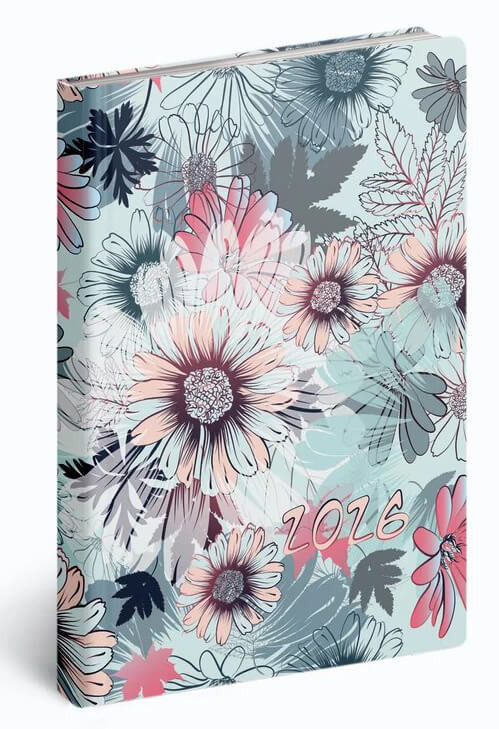 3D-lakkal felületnemesített, kemény táblával, lekerekített sarkokkal és színes gumiszalaggal biztosított zsebnaptár. Heti beosztású, 160 oldalas. Extrák: jelzőszalag, sarokperforálás. Méret: 11,5x16,5cm