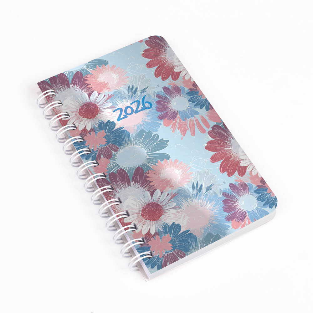 Realsystem zsebnaptár, álló, heti, 7,8x12,8cm, spirál, 2026, SP3 mini virágok. Ikerspirállal összefűzött naptár, heti beosztással. 160 oldalas.