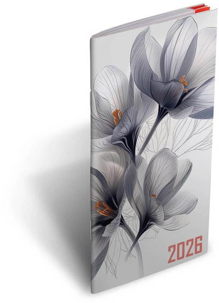 Realsystem zsebnaptár, álló, kétheti, 8x15cm, 2026, zsebirka szirmok