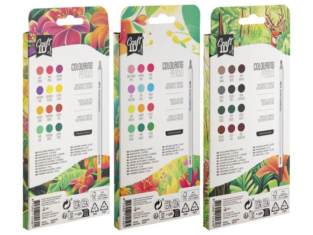 Színes ceruzakészlet 12 db-os, 3 féle változat (intenzív, pasztell és natúr színek). Az ár egy szettre vonatkozik, amely 12 db színes ceruzát tartalmaz.
