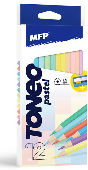 Színes ceruzakészlet 12 db-os, hegyezővel, háromszög test, pasztell, MFP