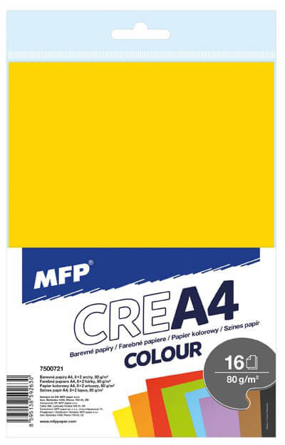 Színes papírok, A/4, 80g, 8 szín, 16 lap/cs, MFP