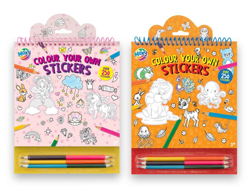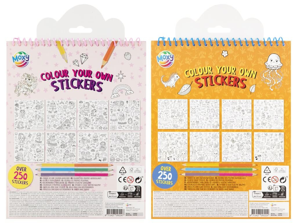 Az ár egy változatra vonatkozik, amely 8 lapon több, mint 150 előrajzolt, kiszínezhető matricát tartalmaz. A készlet tartalmaz 3 db kétvégű színes ceruzát is.