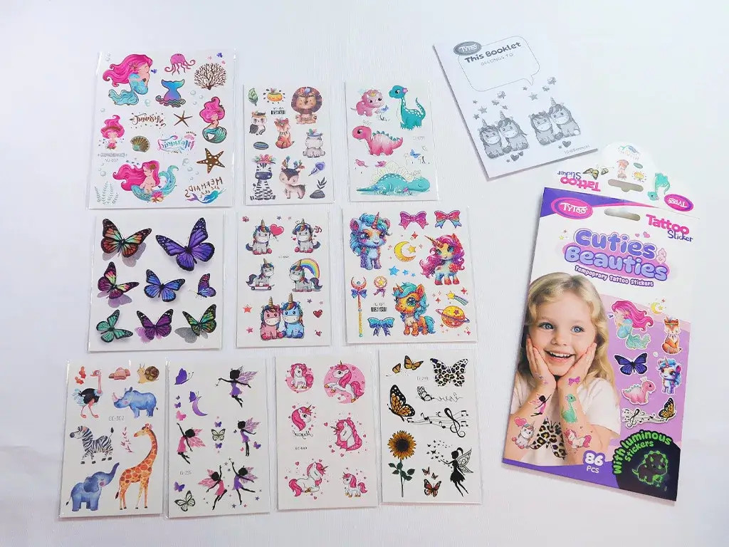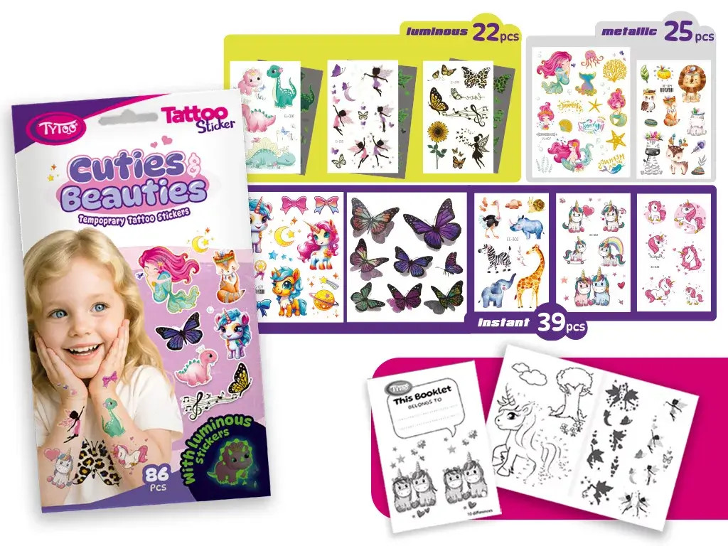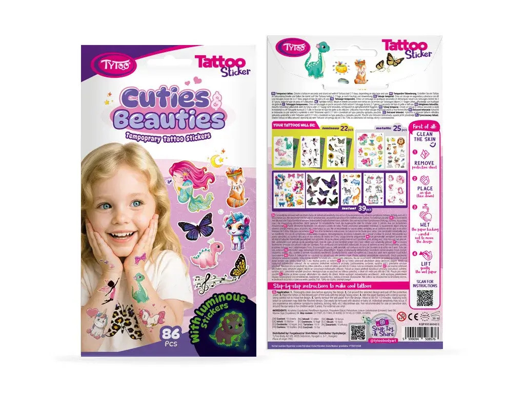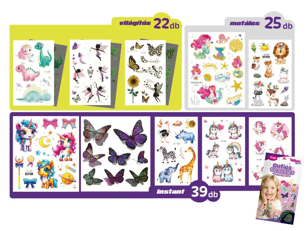 Tetoválás matrica szett, Cuties & Beauties, 10 ív összesen 86 matricával