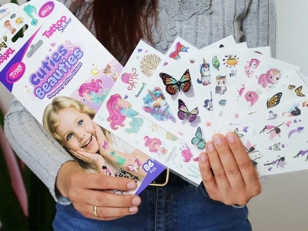 Hercegnők, unikornisok, pillangók, dinók, sellők és megannyi más cuki figura vár ebben a különleges szettben, ami nemcsak színes, hanem világítós és metálfényű tetoválásokat is tartalmaz! Ez a csomag minden kislány álma, akik szeretik a tündér mesék világát.