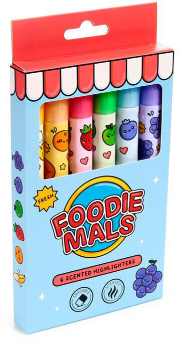 Törölhető, illatos szövegkiemelő szett, 6 db/szett, Gyümölcsök, Foodiemals.
