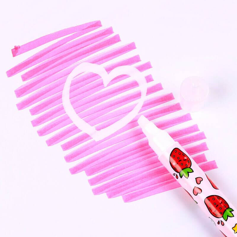 A tinta illatos, és minden toll illata megegyezik a hozzá tartozó gyümölcs illatával. A kiemelt részt a toll végén található radírral eltávolíthatod.