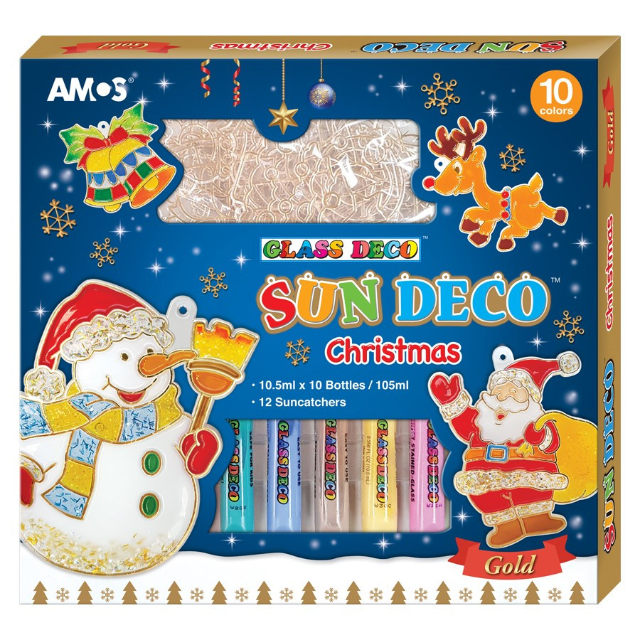 ÚJ Üvegfesték készlet, 10x10ml 12 db fényvarázs formával, Amos, karácsonyi