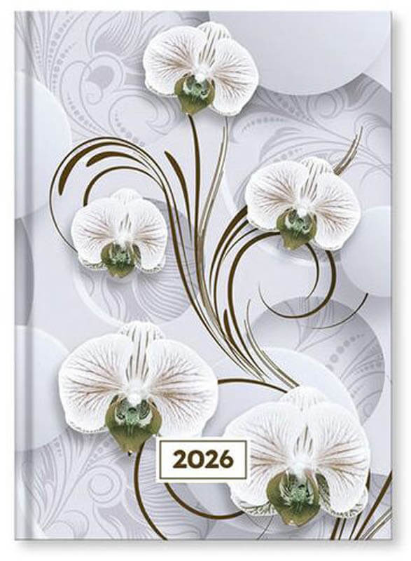 Tervezd meg a napjaidat stílusosan ezzel az elegáns, A/5 méretű 2026-os határidőnaplóval. A borító orchideákkal, szürke - fehér tónusokkal és íves mintákkal díszitett. A modern és mégis visszafogott borító elegáns megjelenítést biztosít, így tökéletes választás lehet irodai használatra, de akár ajándéknak is kiváló.