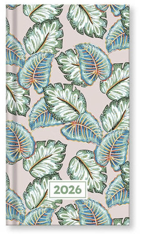 Vectraline zsebnaptár, álló, heti, 2026, Color flexi leaves. Keménytáblás, fehér papíros, mintás papírborítós, fekvő zsebnaptár.